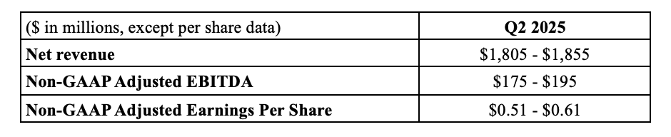 Resideo previously provided an outlook on May 6, 2025 for its second quarter 2025 as follows: